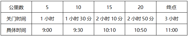 关门时间见下表:(发生特殊情况时,组委会可决定提前关门,运动员需服从指挥)